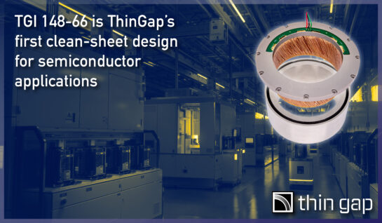 ThinGap is pleased to announce first deliveries of its new TGI 148-66, marking a clean-sheet motor targeted at air-bearing applications within the semiconductor market. The new part set has a rotor diameter (OD) of 148 mm, and an axial height of 66 mm. With a total mass of just over 2.4 kg, it offers a continuous torque output of 10.9 N-m, and peak 1-second torque as high as 80.1 N-m.